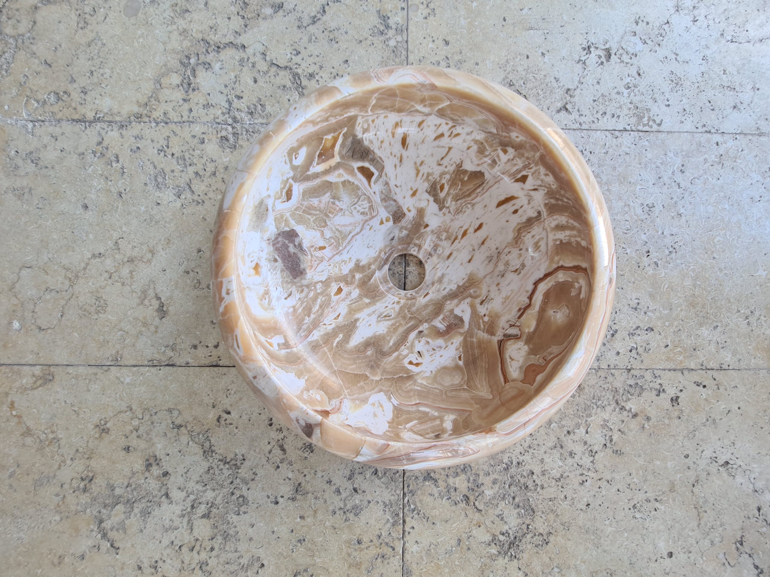 Aspectul modelului de onix poate diferi ușor, între loturi în materie de nuanță, contrast, nervuri, textura și alte detalii, ceea ce este normal datorită modului în care acest model de onix s-a format natural de-a lungul timpului.  De asemenea, încercăm pe cât posibil că imaginile cu produsele noastre să reflecte aspectul lor cât mai bine, deoarece culorile pot fi alterate de rezoluția și luminozitatea ecranului dumneavoastră.