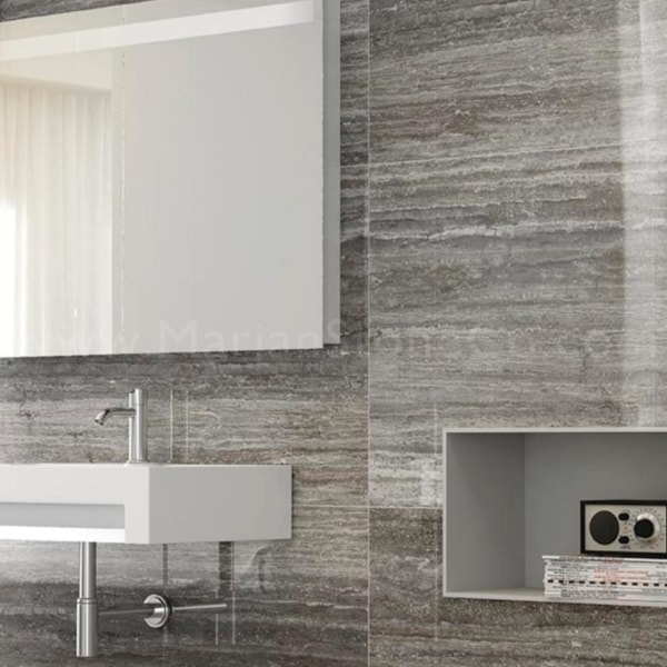Travertinul Grigio Veins este o piatră naturală frumoasă și distinctă extrasă în carierele din Turcia, Orientul mijlociu si Iran. Este foarte apreciat pentru culoarea sa izbitoare gri-argintie, care emană un sentiment de eleganță și sofisticare. Culoarea dominantă a Travertinului Grigio veins este un gri-argintiu rece și strălucitor, care seamănă cu strălucirea metalului argintiu. Această nuanță unică îl diferențiază de alte tipuri de travertin și îl face o alegere favorită pentru cei care caută o estetică modernă și luxoasă. Una dintre caracteristicile definitorii ale Travertinului Grigio veins este variația sa naturală a culorii și texturii. În baza de culoare gri-argintie, puteți găsi nervuri delicate și variații subtile, adăugând profunzime și complexitate aspectului general al pietrei. Aceste variații naturale asigură că fiecare piesă de travertin argintiu este unică, făcând-o o operă de artă individuală.