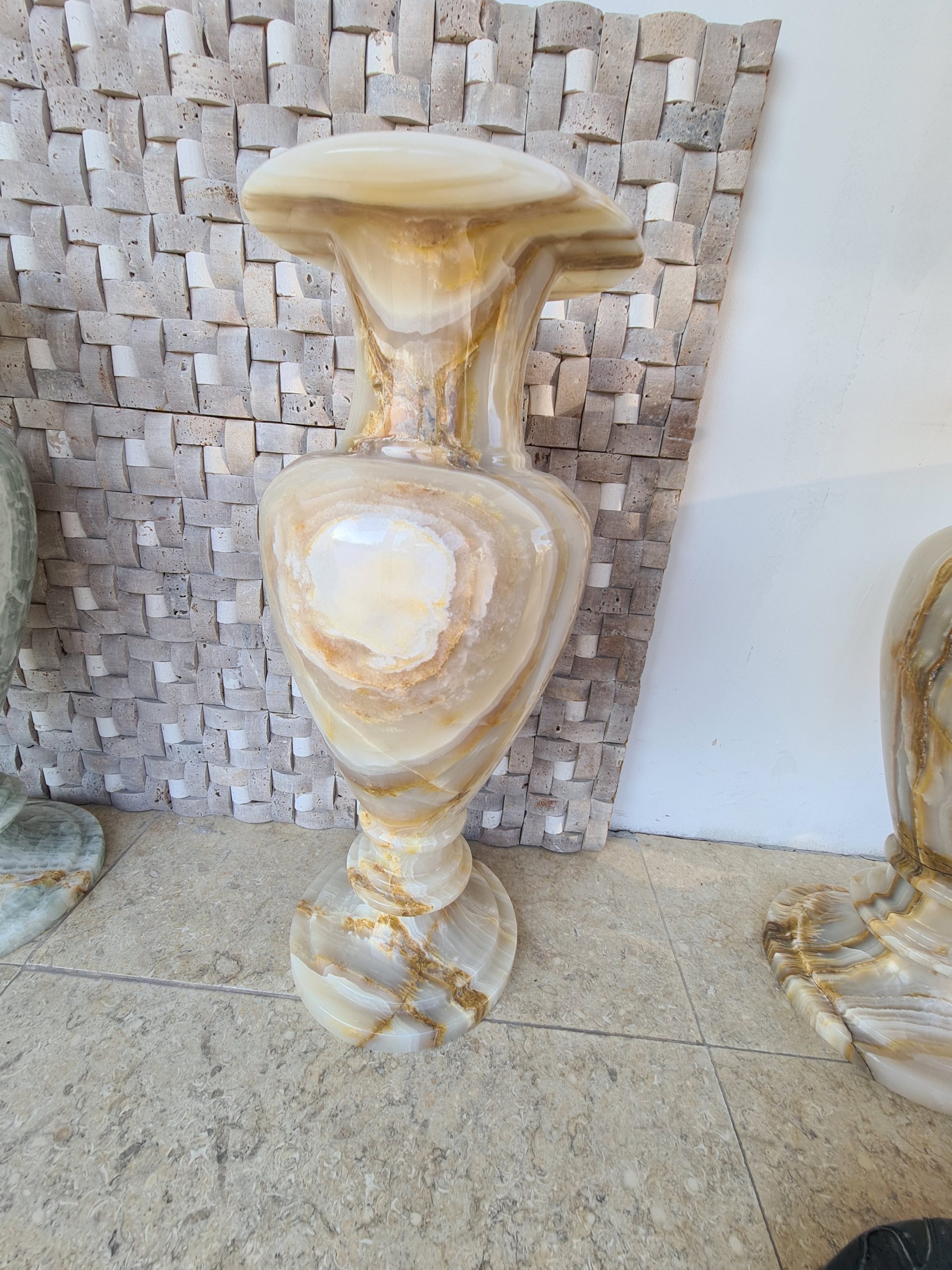O vază din piatra de onix este o piesă de artă care aduce un plus de eleganță și rafinament oricărui spațiu. Onixul este apreciat pentru frumusețea sa naturală, cu variații de culori și striații unice care fac fiecare obiect din acest material deosebit.
